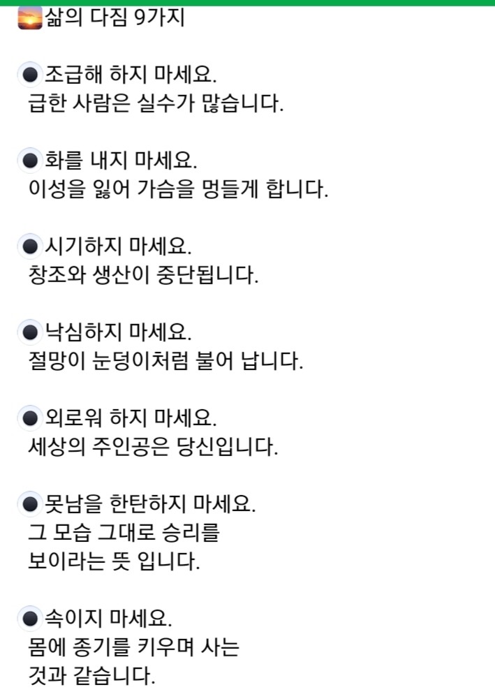 삶의 9가지 다짐