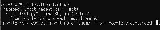 ImportError: cannot import name 'enums' from 'google.cloud.speech'