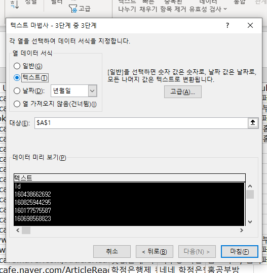3.'텍스트'를 선택하고 마침.