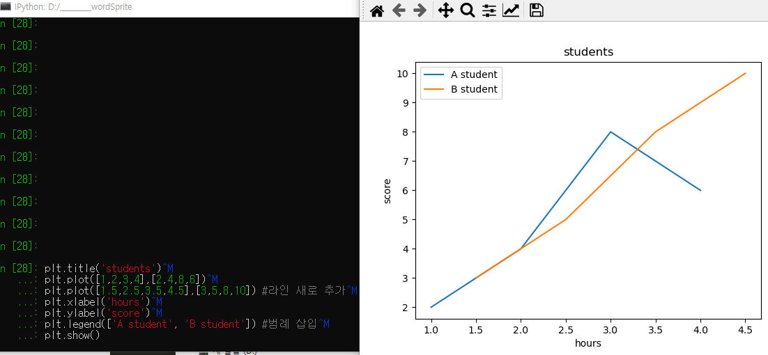 사실 주피터 노트북에서는 show()를 사용하지 않더라도 그래프가 자동으로 렌더링 되므로 그래프가 시각화가 되는 것을 확인할 수 있지만, 여기서는 다른 개발 환경에서 사용할 때 또한 가정하여 show()를 실습 코드에 삽입하였습니다.