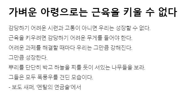 근육을 키우려면 감당하기 어려운 무게를 들어야 한다.