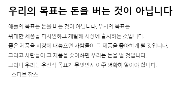 애플의 목표는 돈을 버는 것이 아닙니다. 우리의 목표는