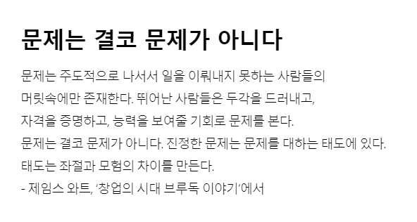 문제는 결코 문제가 아니다. 진정한 문제는 문제를 대하는 태도에 있다.