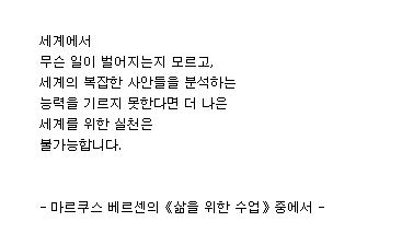 - 마르쿠스 베르센의《삶을 위한 수업》중에서 -