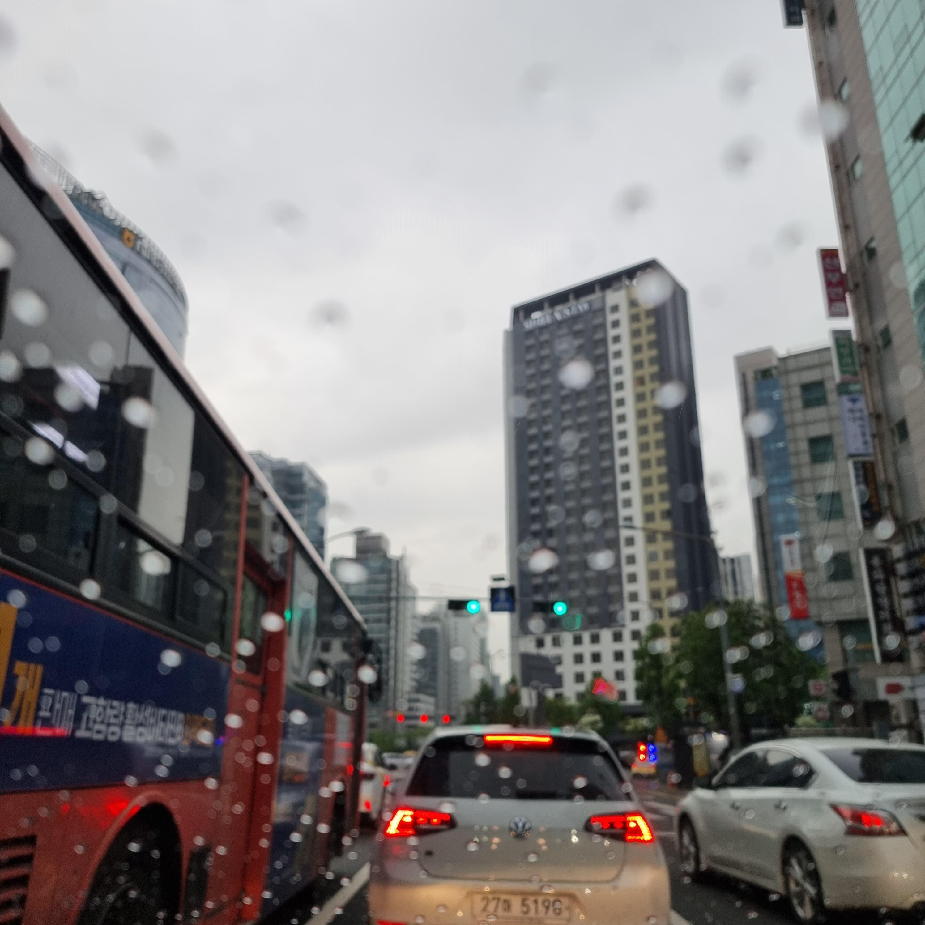 비가 오고.