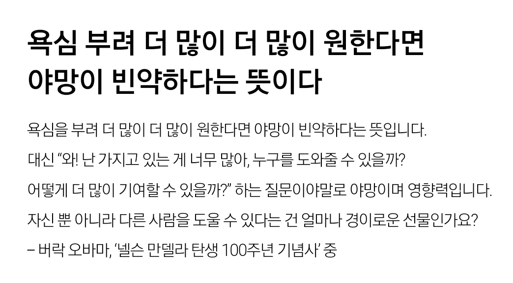 욕심을 부려 더 많이 더 많이 원한다면 야망이 빈약하다는 뜻입니다.