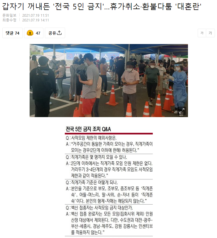 갑자기 꺼내든 '전국 5인 금지'…휴가취소·환불다툼 '대혼란'