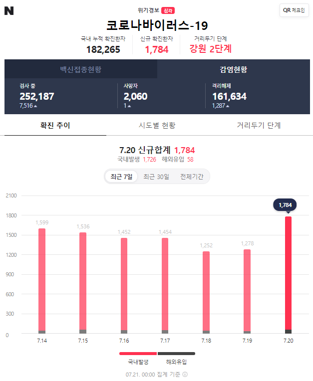 코로나19 일일확진자 상황, 20210721