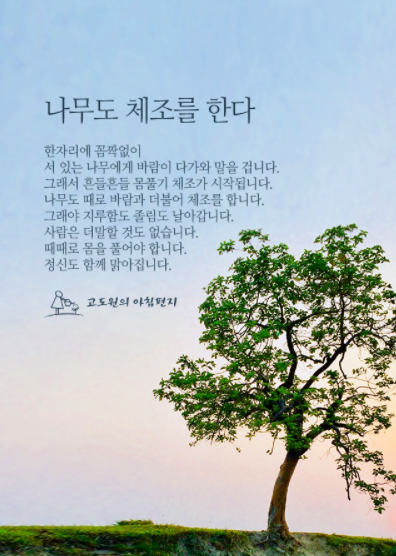 서 있는 나무에게 바람이 다가와 말을 겁니다.