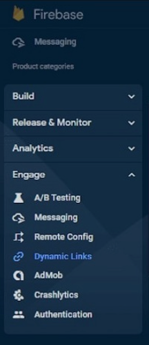 Open the DynamicLink section in firebase