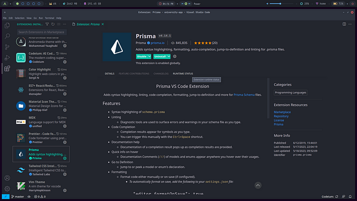 Only for DATABASE USERS :- Adds syntax highlighting, formatting, auto-completion, jump-to-definition and linting for .prisma files.
