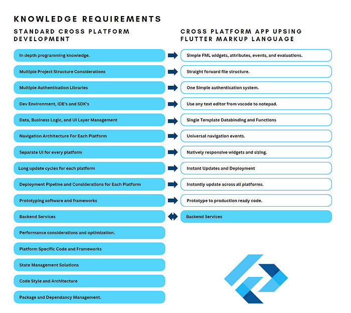 이 시점에서 Flutter 마크업 언어는 원래의 기본 디자인 사양을 상속하여 해석된 단일 코드베이스로 완벽하게 작동하는 크로스 플랫폼 애플리케이션을 만들 수 있습니다. 이를 통해 온라인과 오프라인 모두에서 앱 스토어 및 데스크톱 애플리케이션 내에서 컴파일되지 않은 애플리케이션 업데이트, 즉각적인 롤아웃 및 OTA 업데이트가 가능합니다. 이러한 개선에도 불구하고 대부분의 애플리케이션 빌더의 요구 사항을 충족하려면 추가 목표를 충족해야 했습니다.