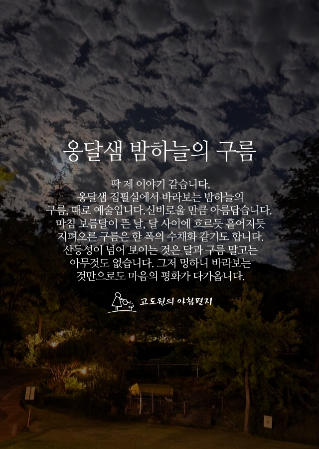 | 옹달샘 밤하늘의 구름 (0) | 2022.06.16 |