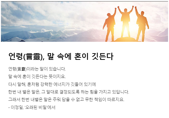말 속에 혼이 깃든다는 뜻이지요.
