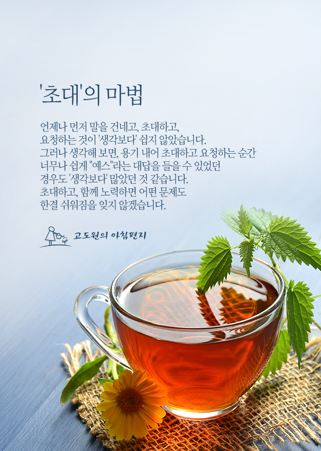 * 언제나 먼저 말을 건네고, 초대하고, 요청하는 것이 '생각보다' 쉽지 않았습니다. 그러나 생각해 보면, 용기 내어 초대하고 요청하는 순간 너무나 쉽게 "예스"라는 대답을 들을 수 있었던 경우도 '생각보다' 많았던 것 같습니다. 초대하고, 함께 노력하면 어떤 문제도 한결 쉬워짐을 잊지 않겠습니다.