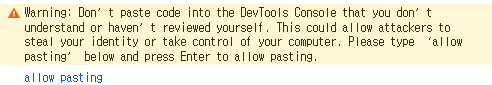 - 경고 메시지가 나타난 크롬 개발자 도구 콘솔에서 allow pasting 이라고 정확하게 입력합니다.