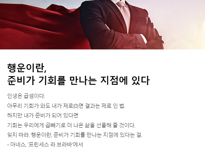 아무리 기회가 와도 내가 제로(0)면 결과는 제로 인 법.