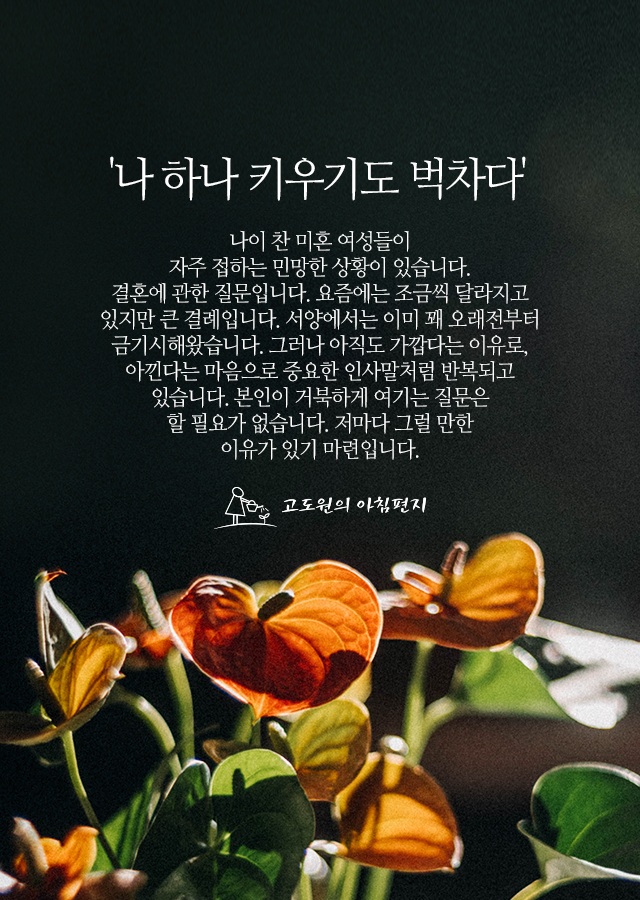 모르겠다. "결혼 안 해? 그래도 아이는 하나 있어야지."