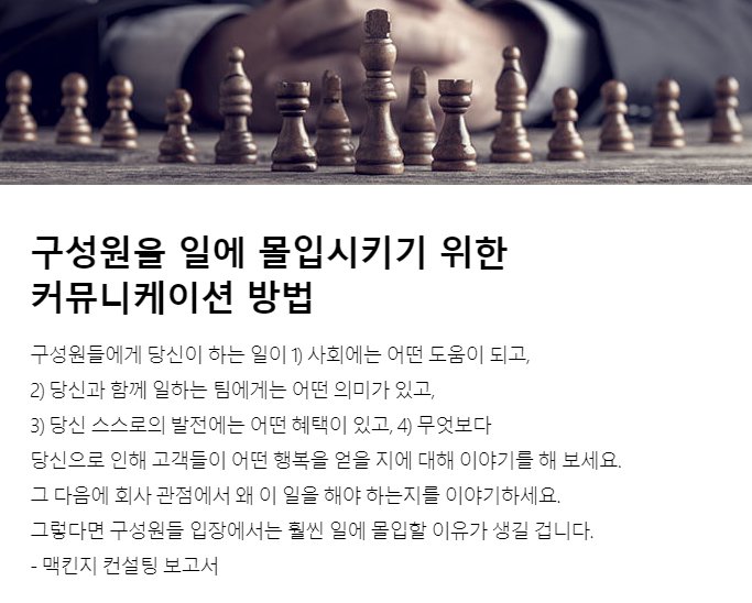 그렇다면 구성원들 입장에서는 훨씬 일에 몰입할 이유가 생길 겁니다.