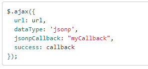 $.ajax({ url: url, dataType: 'jsonp', jsonpCallback: "myCallback", success: callback });