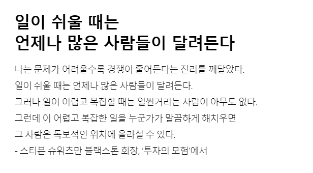 남들이 보지 못하는 것, 어려워보여서 뛰어들 엄두를 내지 못하는 것들을 찾아내