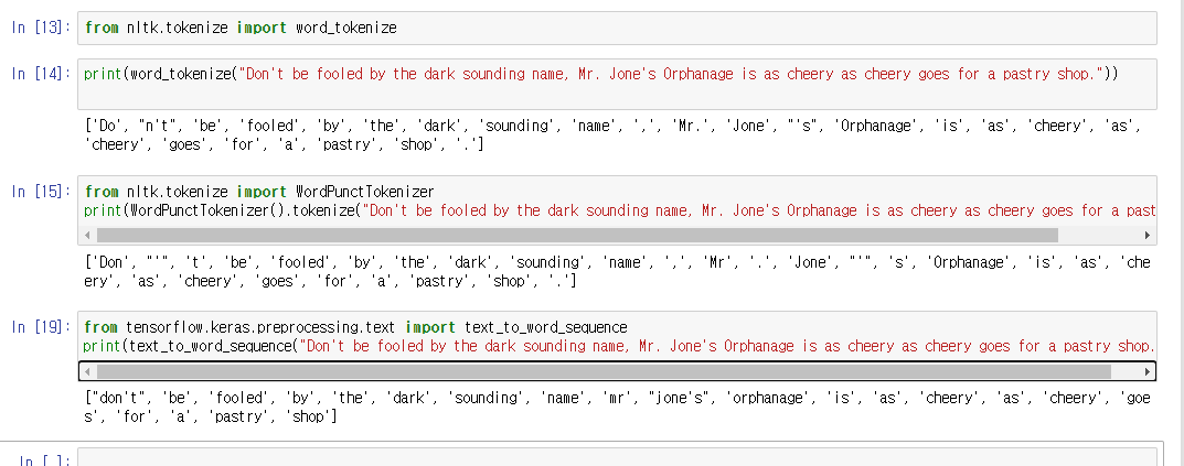 ## WordPunctTokenizer는 구두점을 별도로 분류하는 특징을 갖고 있기때문에, 앞서 확인했던