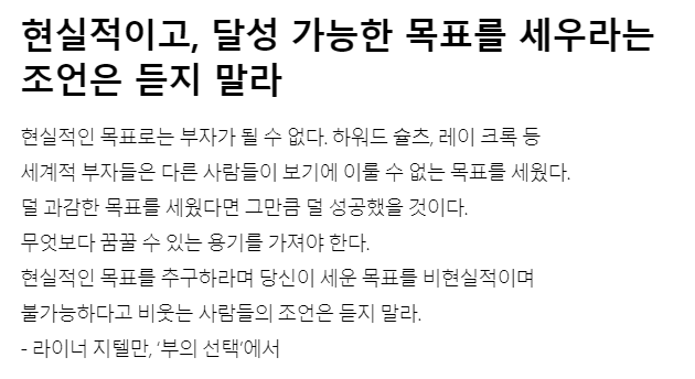 현실적인 목표로는 부자가 될 수 없다. 하워드 슐츠, 레이 크록 등
