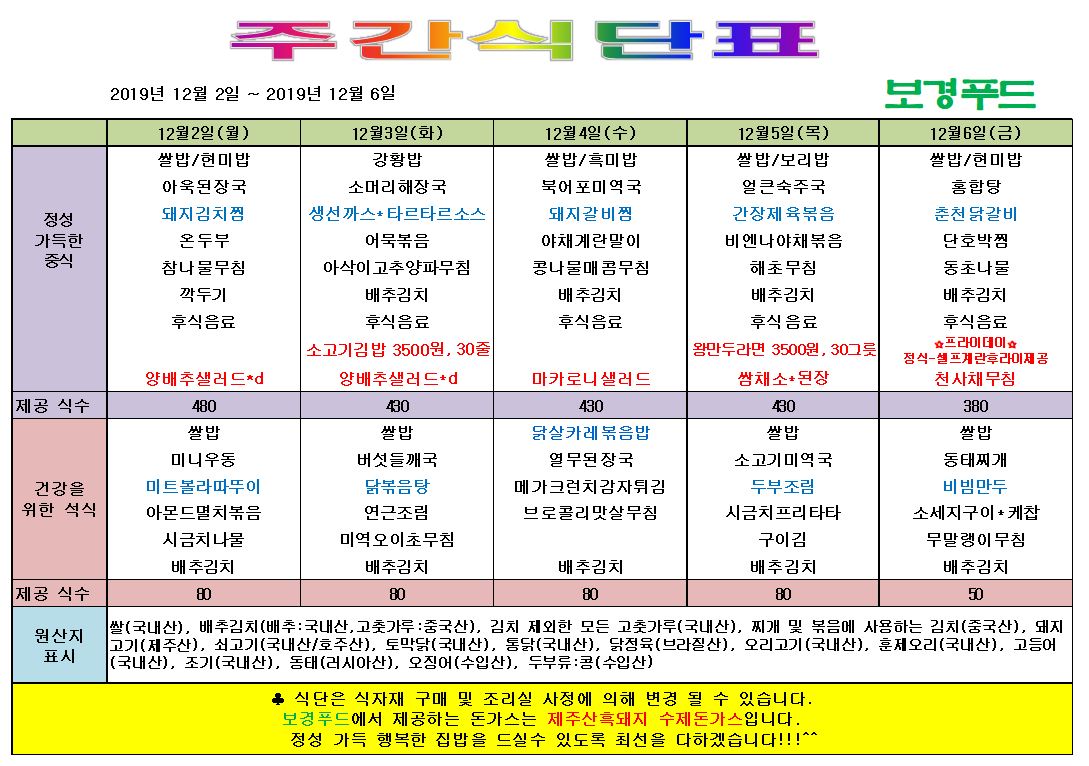 | #제주첨단과학기술단지 #구내식당 #메뉴 #2019년 #12월 #2주차 #주간메뉴 (0) | 2019.12.09 |
