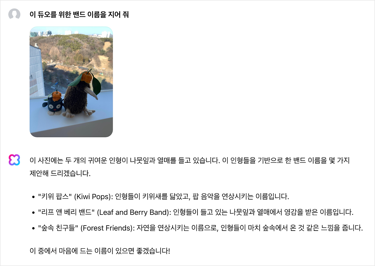 Creative Writing (with Image Grounding) HCX LLM 본연의 기능에 가깝지만, 이미지에 포함된 요소들을 기반으로 창의적인 글쓰기가 가능합니다.