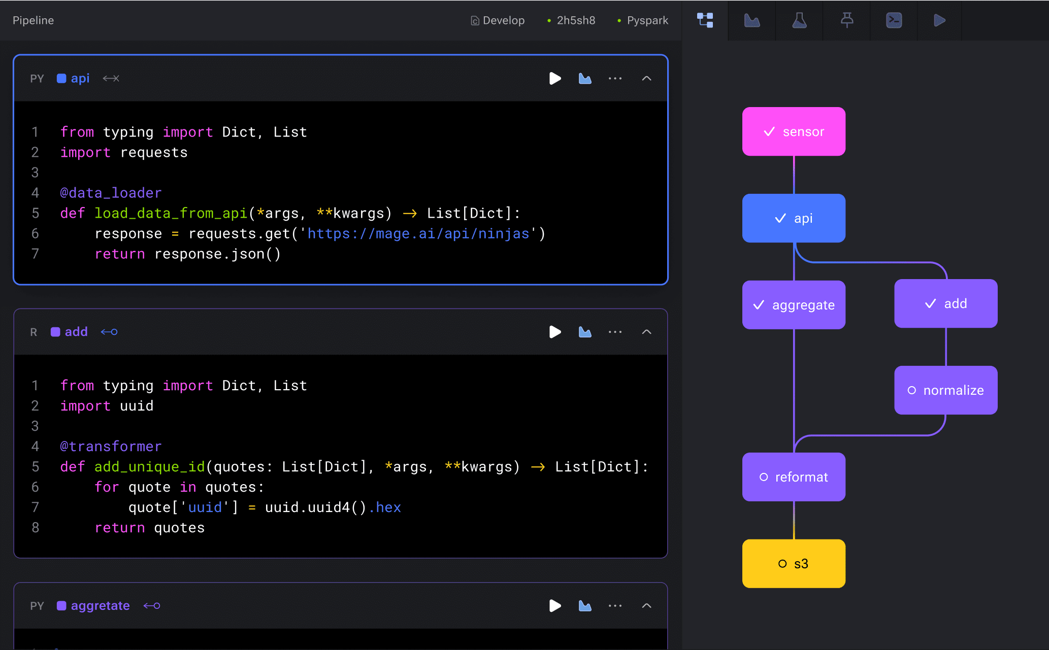 Mage AIis a data transforming and integrating framework that allows data scientists and ML engineers to build and automate data pipelines without extensive coding. Data scientists can easily connect to their data sources, ingest data, and build production-ready data pipelines within Mage notebooks.