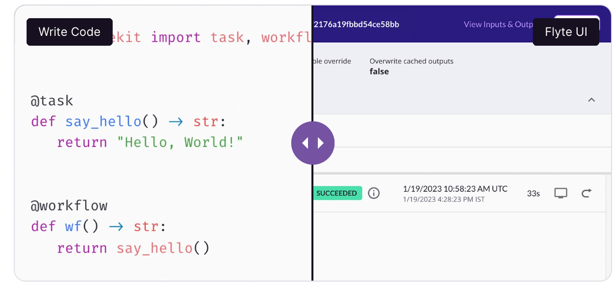 Flyteempowers data scientists and data and analytics engineers with the autonomy to work independently. It provides them with a Python SDK for building workflows, which can then be effortlessly deployed to the Flyte backend. This simplifies the development, deployment, and management of complex ML and data workflows by building and executing reliable and reproducible pipelines at scale.