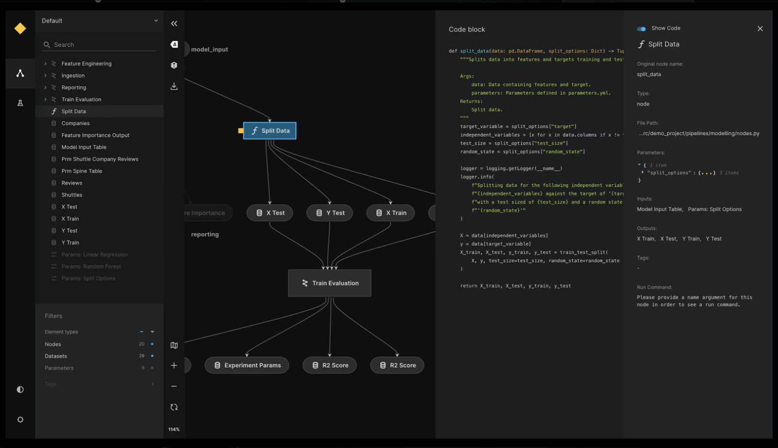 Kedrois an ML development framework for creating reproducible, maintainable, modular data science code. Kedro improves AI project development experience via data abstraction and code organization. Using lightweight data connectors, it provides a centralized data catalog to manage and track datasets throughout a project. This enables data scientists to focus on building production level code through Kedro's data pipelines, enabling other stakeholders to use the same pipelines in different parts of the system.