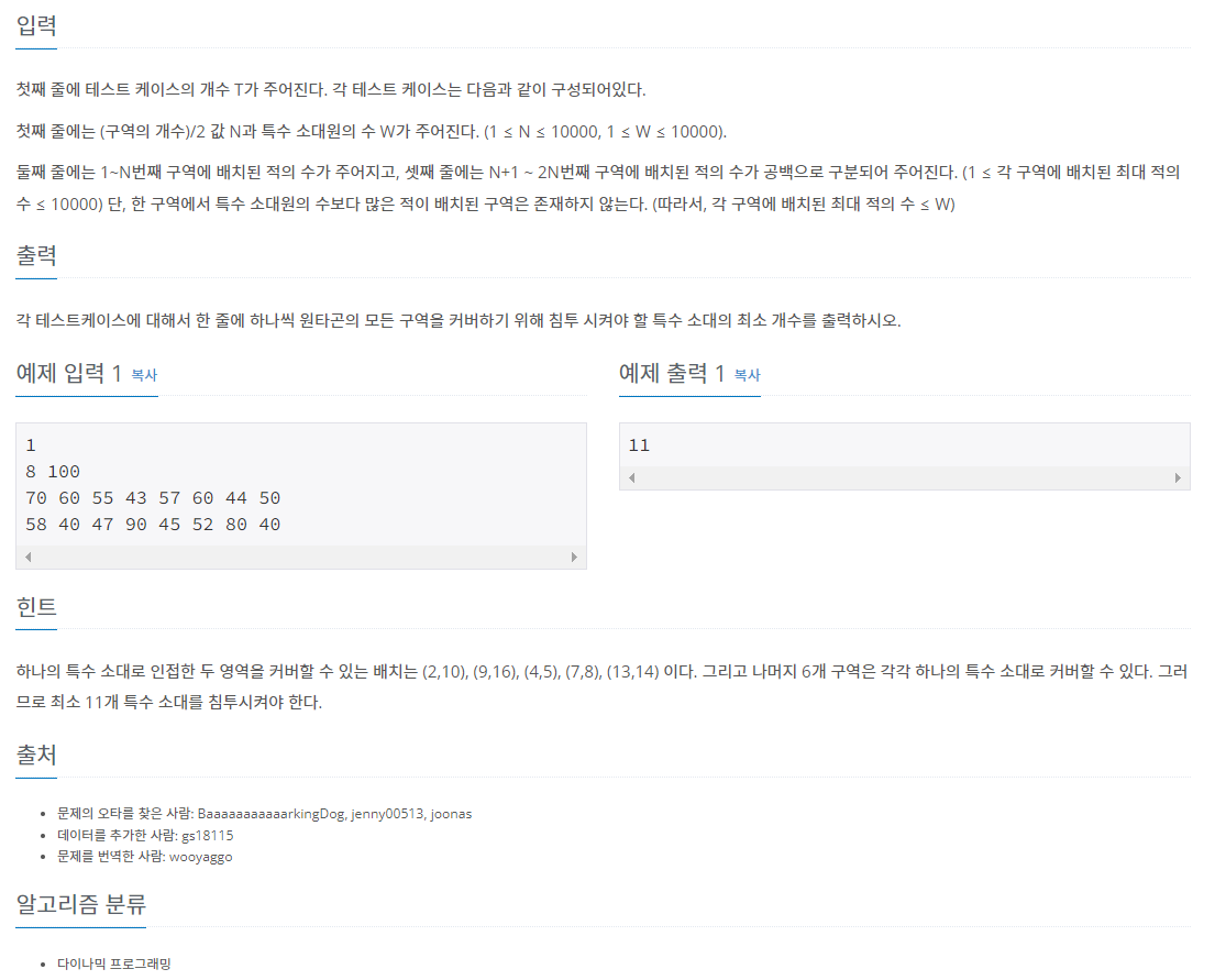 *** 참고 : BOJ 1006 습격자 초라기 https://casterian.net/algo-prob/boj1006.html (점화식으로 접근하신 분)