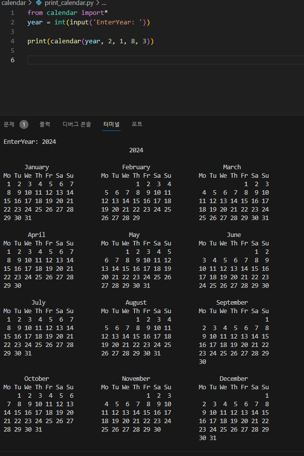 print(calendar(year, 2, 1, 8, 3))