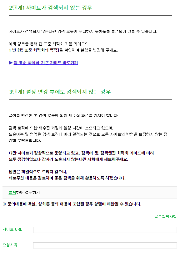 네이버 통합검색에서 내 사이트 검색이 안될때