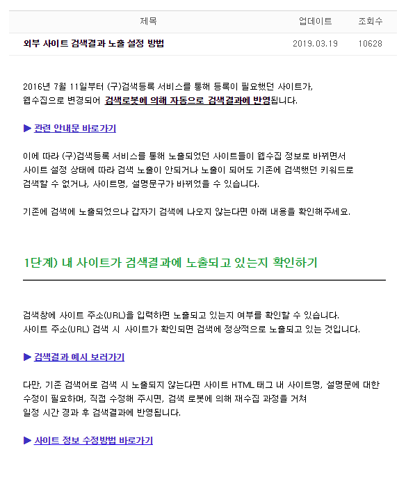 이에 따라 (구)검색등록 서비스를 통해 노출되었던 사이트들이 웹수집 정보로 바뀌면서