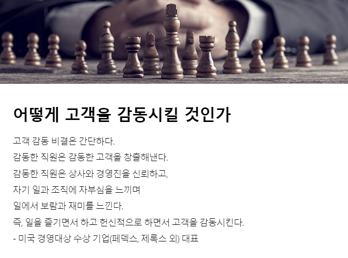 | 감동한 직원은 감동한 고객을 창출해낸다. (0) | 2021.11.22 |