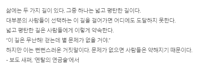 평탄한 길만 걸으려고 하는 사람은 자꾸 문제를 피하려고 하기 때문에