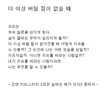 - 조앤 치티스터의《모든 일에는 때가 있다》중에서 -