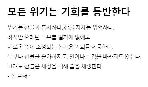 위기는 산불과 흡사하다. 산불 자체는 위험하다.