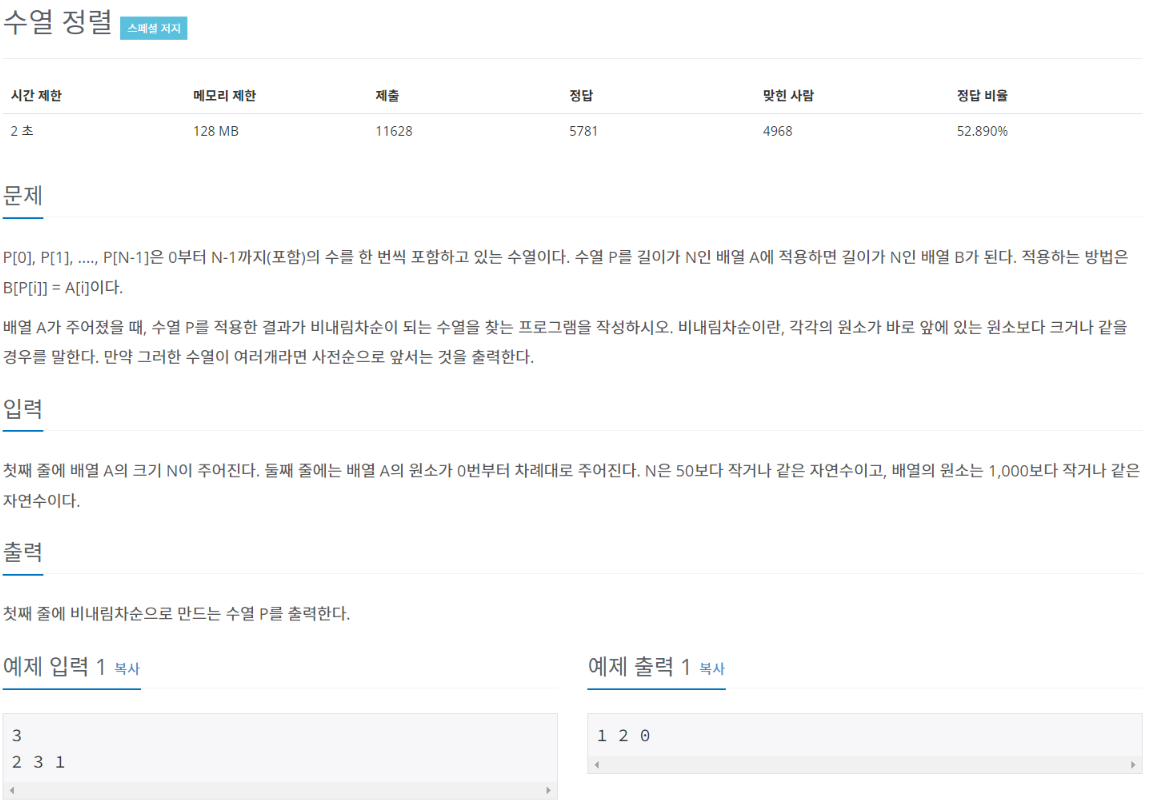 [백준] 1015번 수열 정렬 - PYTHON