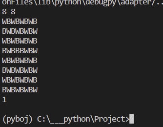 첫째 줄에 N과 M이 주어진다. N과 M은 8보다 크거나 같고, 50보다 작거나 같은 자연수이다. 둘째 줄부터 N개의 줄에는 보드의 각 행의 상태가 주어진다. B는 검은색이며, W는 흰색이다.