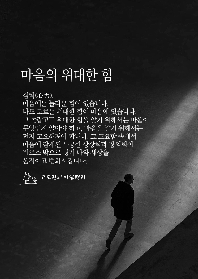 그 놀랍고도 위대한 힘을 알기 위해서는 마음이