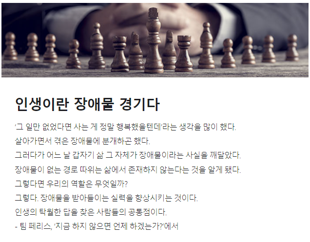 ‘인생이란 장애물 경기다. 처음 장애물을 뛰어 넘더라도