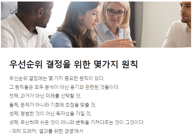 드러커 원칙은 잘 새길 필요가 있습니다.