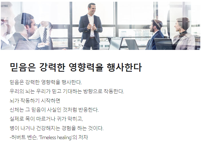 신체는 그 믿음이 사실인 것처럼 반응한다.