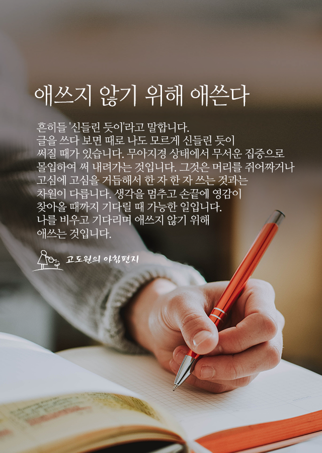 몰입하여 써 내려가는 것입니다. 그것은 머리를 쥐어짜거나