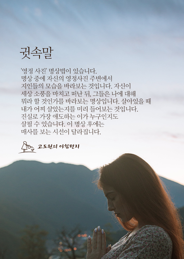 * '영정 사진' 명상법이 있습니다.