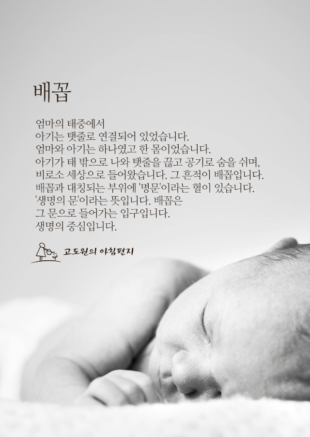 비로소 세상으로 들어왔습니다. 그 흔적이 배꼽입니다.