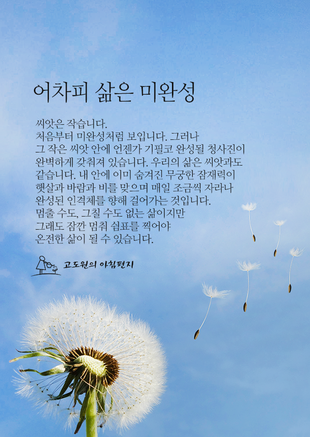 미완성의 씨앗은 완성의 열매를 맺는다.